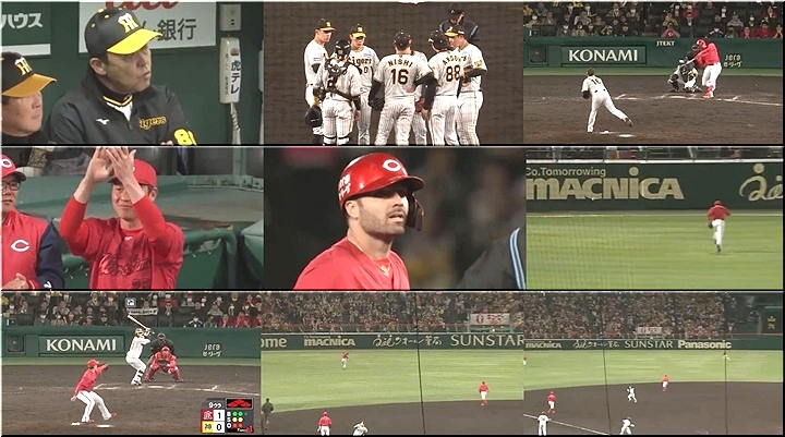 1:3番 ノイジー 無死走者なし ショートへの内野安打 1塁、2:4番 大山 悠輔 無死1塁 ライトへのヒット 1,2塁、3:5番 佐藤 輝明 無死1,2塁 −広島:内野手マウンドへ集まる− セカンドゴロ 1アウト1,3塁、4:6番 島田 海吏 一死1,3塁 内角の球を打つもセンターフライ 2アウト、5:7番 梅野 隆太郎 二死1,3塁 フォアボールを選ぶ 満塁、6:8番 木浪 聖也 二死満塁 −広島:コーチマウンドへむかう− 一打先制の場面でセカンドゴロ 3アウト