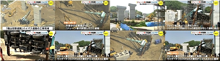いつでしたか…もぅ数日前に、奇しくも、こんなクレーン車転倒事故が福山市内で…