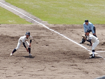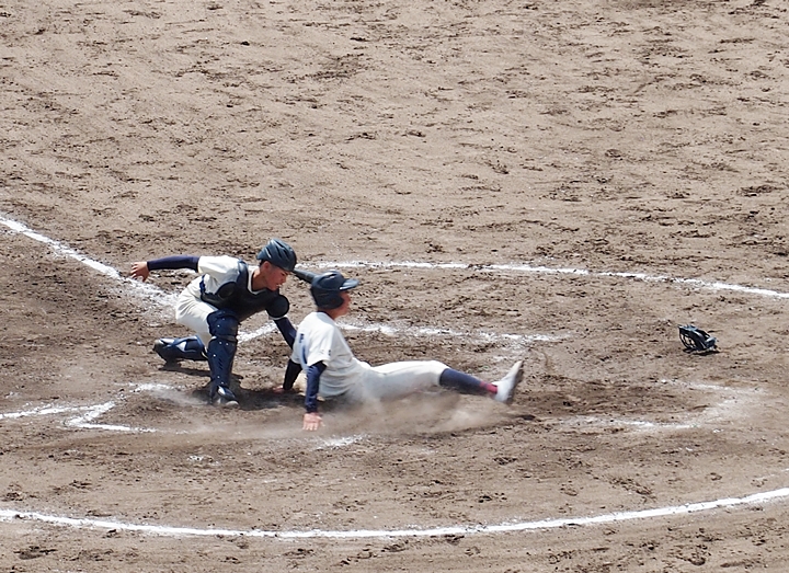 プロ野球でしたらビデオ判定となりますのかも…そこは高校野球ですから、審判の判定は絶対です。神辺旭の追加点は叶いませんでしたネ(^-^)//"