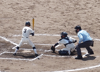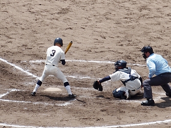 チャンスはあるのですけど、仲々得点に結びつきません両チームで、3回表を終えて「尾道商0×0神辺旭」の展開ですけど、その裏の神辺旭の攻撃。