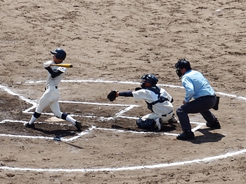 ヒットで出塁した選手を2塁まで進め、チャンス到来の神辺旭。先取点は神辺旭に入りますかも…