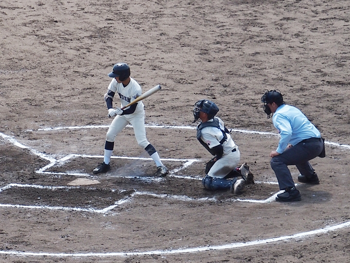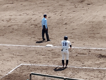 4・5回と両チーム無得点で、6回表の尾道商業。待望の1点が入り「尾道商1×1神辺旭」と追い付きまして、まだ追加得点のチャンスが続きます。