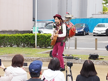 暫し拝見し、先ほどの中央公園北<Xポットに戻りますと、油井ジョージ ワンマンバンド≠ヘ終わり、続いてりずむらいす≠フお二人がスタンバイ。