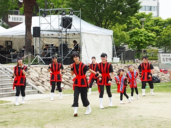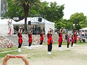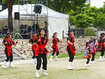 ステージ・ステージ前の広場では、沖縄ゆかりの皆様が…どんなグループなんだろう?…と、バラ祭りのパンフレットを確認しますけど、記載がありませんから分かりません(^-^)
