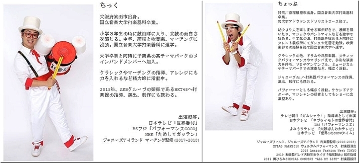 ジャニーズJr.へ打楽器パフォーマンスの指導、演出、制作にも携わる。