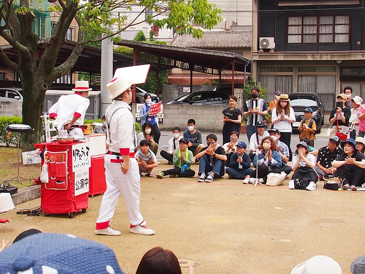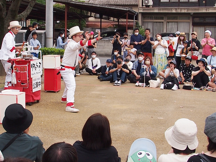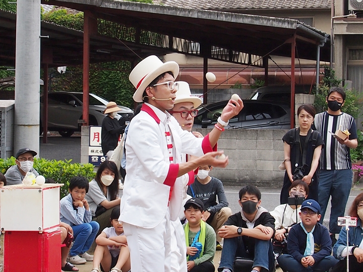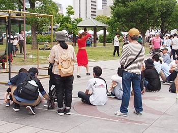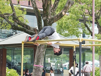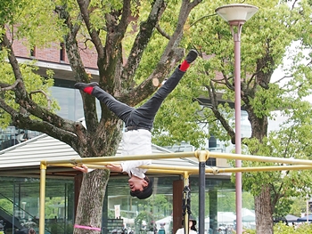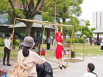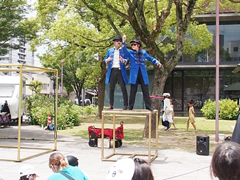 中央公園南スポットでは、叶結≠フお二人が「サーカスアクロバット」を…