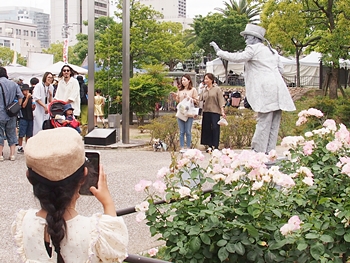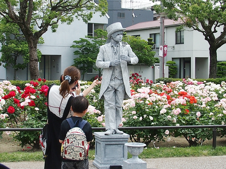 …と、こんなお二人のようです。ズッと拝見しておりましたら楽しいのでしょうけど、ローズパレードのスタートも近付いて来ましたので、そろそろばら公園&向に向かいます事に。