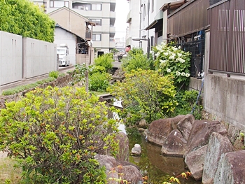 中央公園からバラ公園には、いつものように道三川に沿って向かいます。