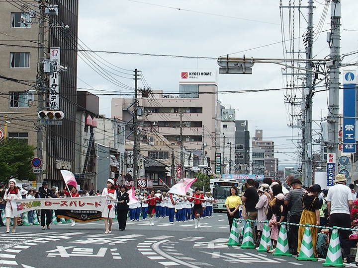 ローズパレード≠拝見します時のGONsanの定位置は、ばら公園脇の歩道沿いとなるのですけど、ヤッて来ますのが遅れましたから、今回は少しズレた位置で(^.-)☆
