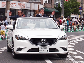 そして、そのまた後方に熊谷市議会議長・小丸福山市商工会議所会頭≠フお二人が続きます。