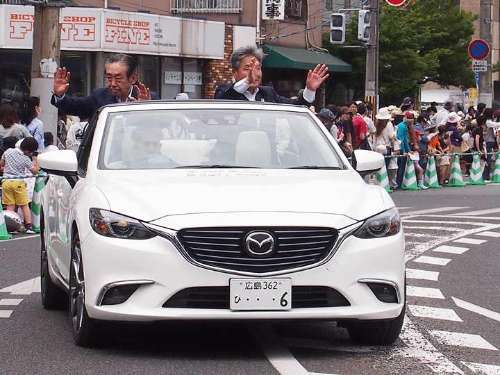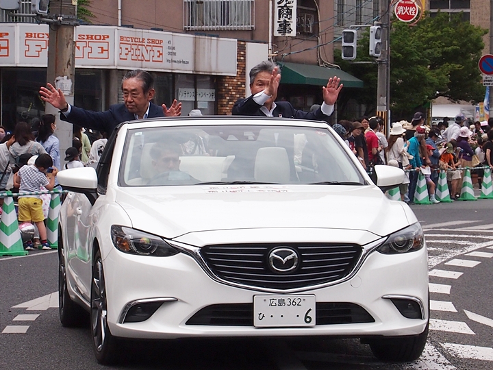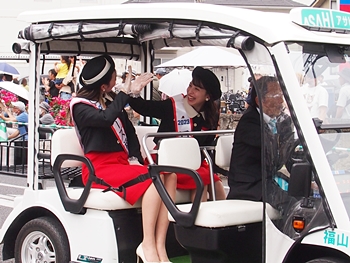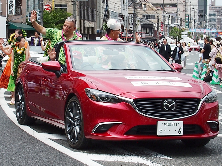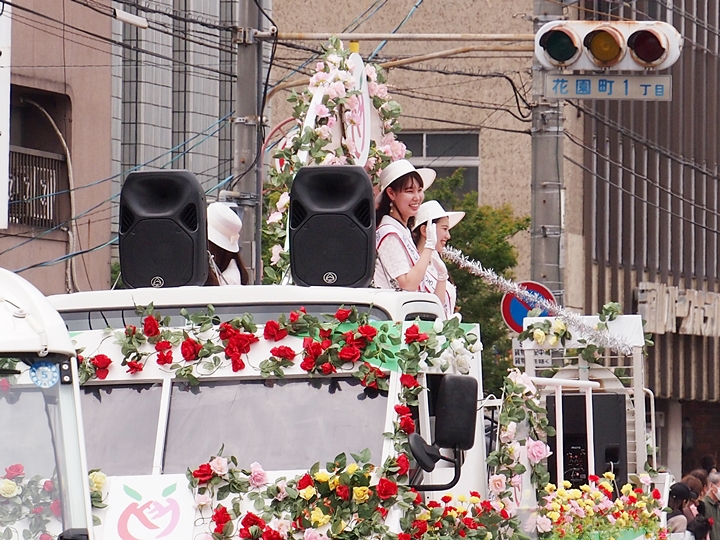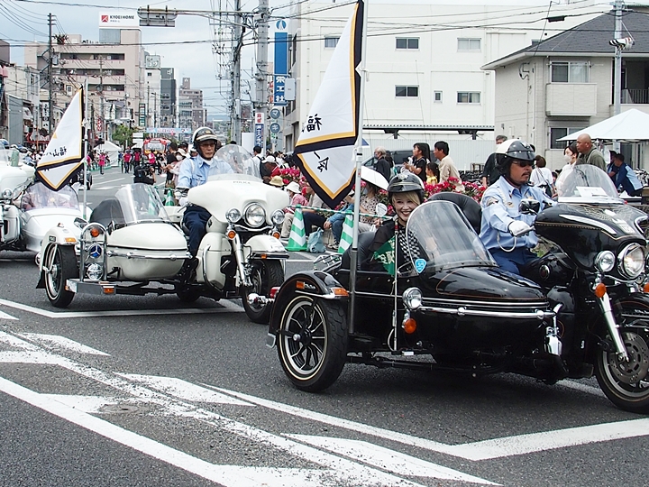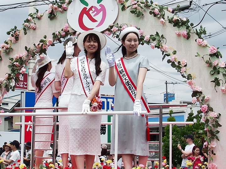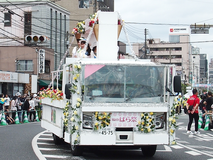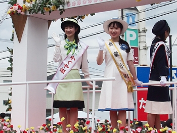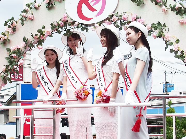 後続の花車には、広島FFフラワークィーン・観光大使おかざき≠フ4名の皆様です。