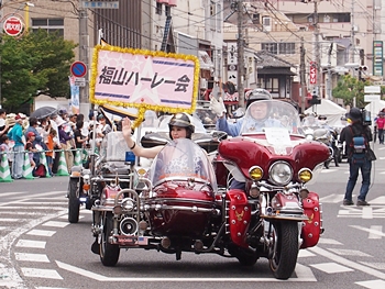 ローズパレードの方は、以降、福山地区保護司会・福山地区更正保護女性会∞福山東地区防犯組合連合会・福山東警察署∞福山ハーレー会∞天當会=cと、続いて行きます。けど、「天當会」とは、どんなグループなのでしょう?
