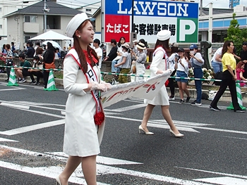 そして、続いてたけはら かぐや姫∞倉敷小町≠フお二人で、向こう側に三原ミスやっさ∞道観光大使≠フお二人です(^.-)☆こっちを向いて!!…と声掛けたい気持ちですけど、恥ずかしくてとても(^-^;