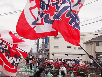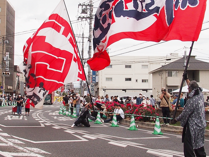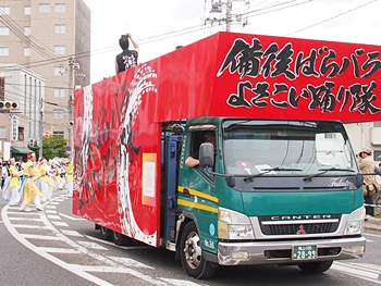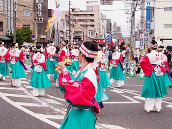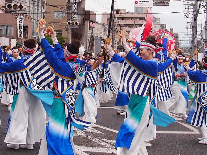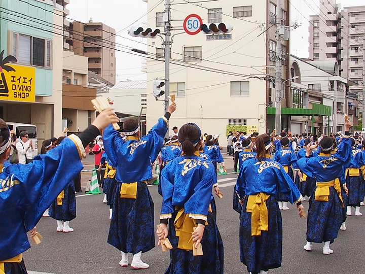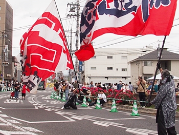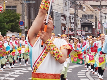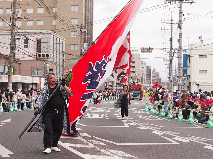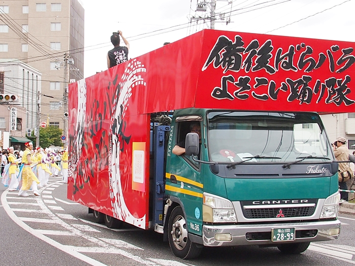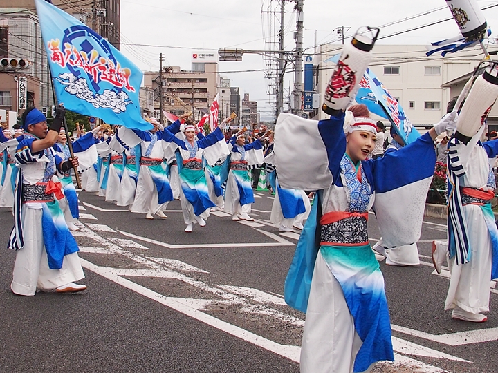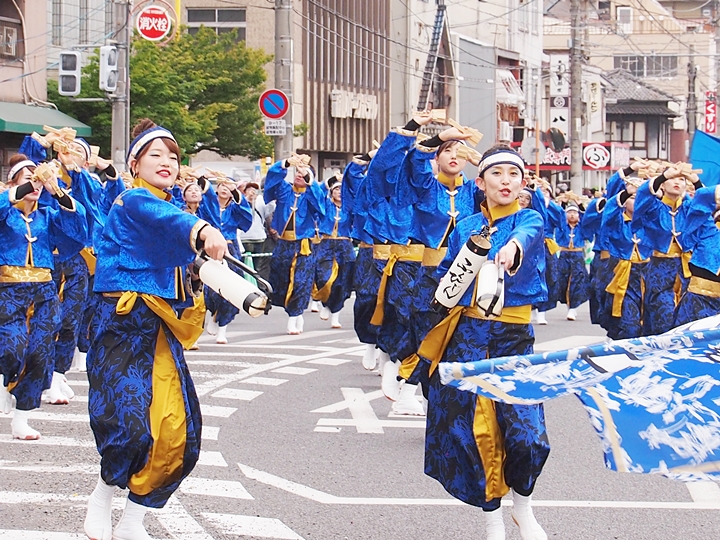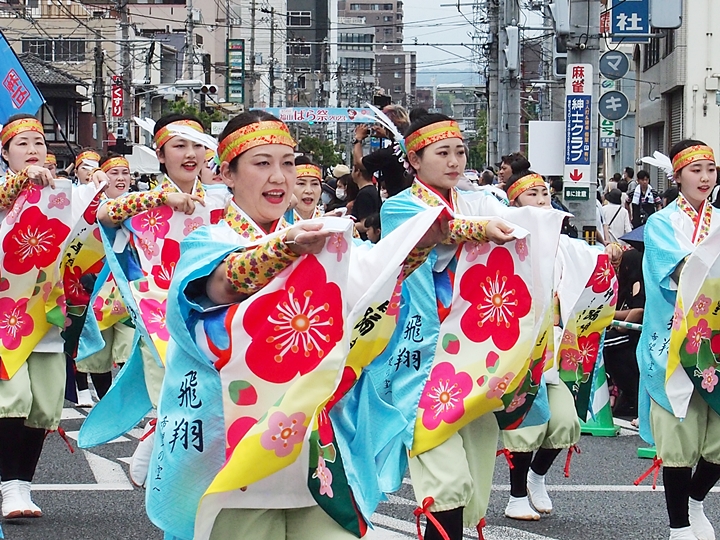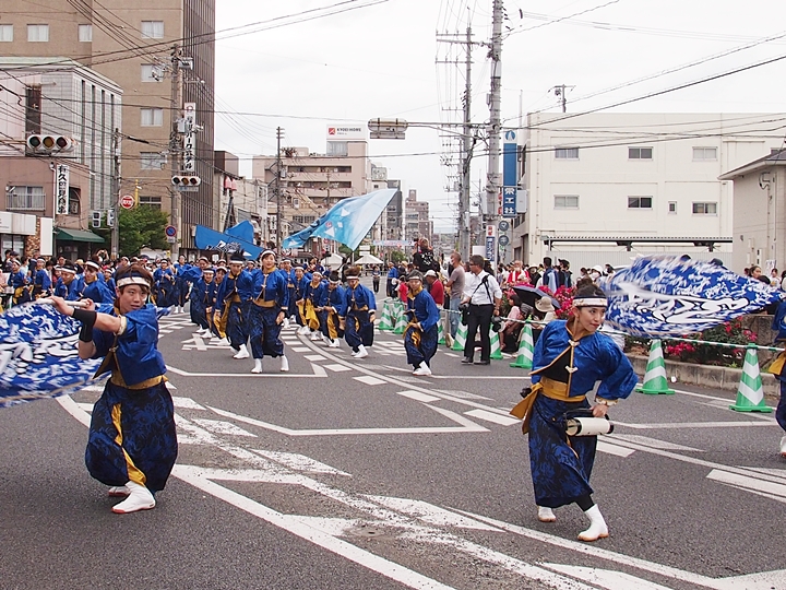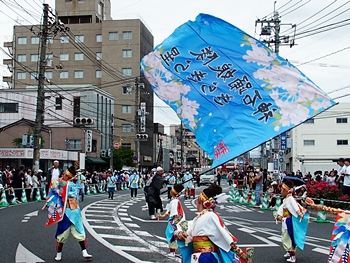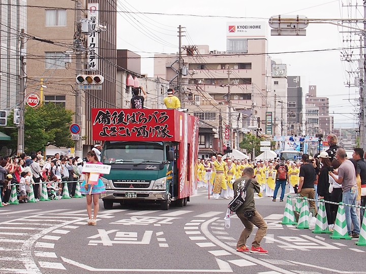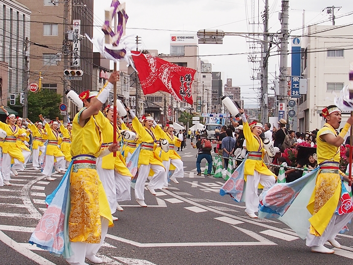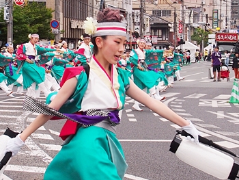 神石踊娘隊きらきら星≠フ皆さんが通過しますと、後方には、華笑天〜かえで〜≠フ皆さんです。