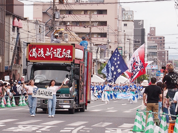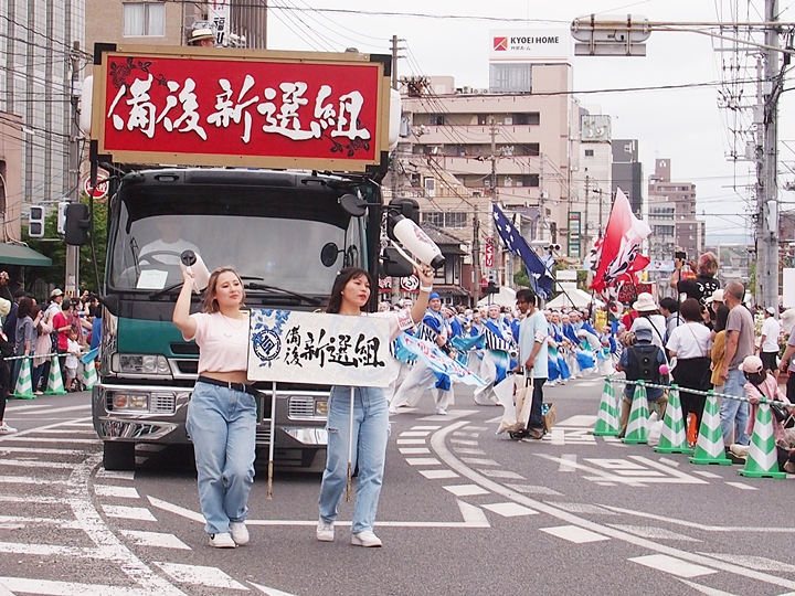 そして、備後新撰組∞備後ばらバラよさこい踊り隊≠ニ続きます。いずれもローズパレード≠ナは常連の皆様ですネ。人数が多くても統制がとれ、皆さん笑顔で、実に楽しそうに踊っておられます。さすがですネ(^-^)//"