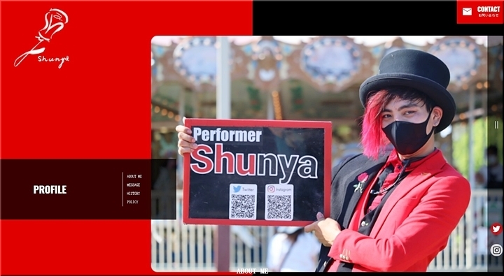 ・MESSAGE -- 赤と黒の世界へようこそ。広島県福山市を拠点に大道芸や舞台、イベントで活動している赤と黒がトレードマークのPerformerShunya公式ホームページです。ここでは僕のこれまでの活動やこれからの活動の情報をご覧いただけます。