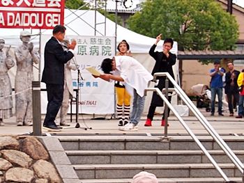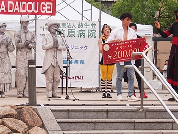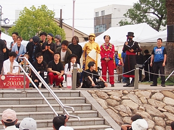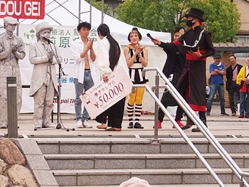 商店街賞∞一発芸大会%凾フ各種表彰が終わりますと、グランプリ大会決勝進出の5組の皆様がステージ上に…当のご本人の皆様にとられましては、息詰まる一瞬到来でしょうか(^.-)☆