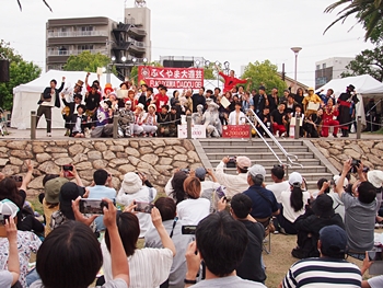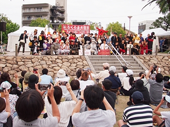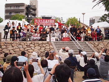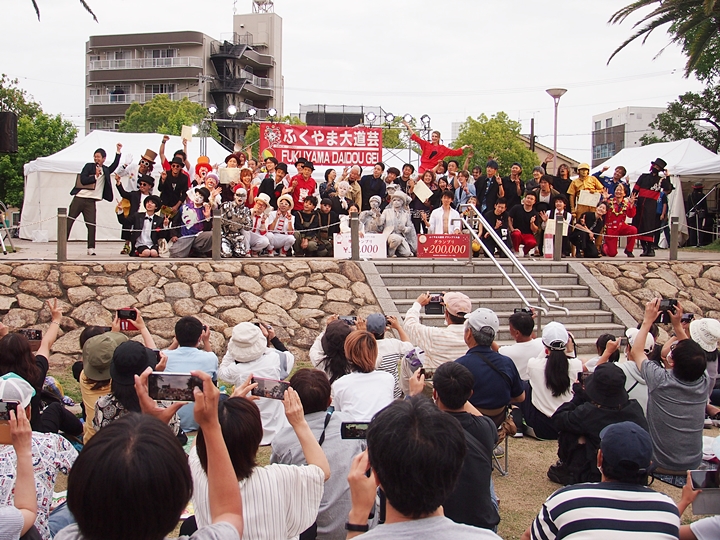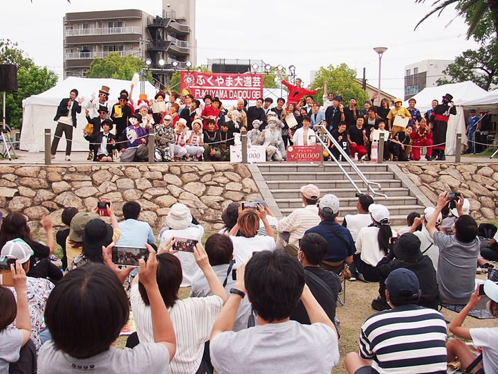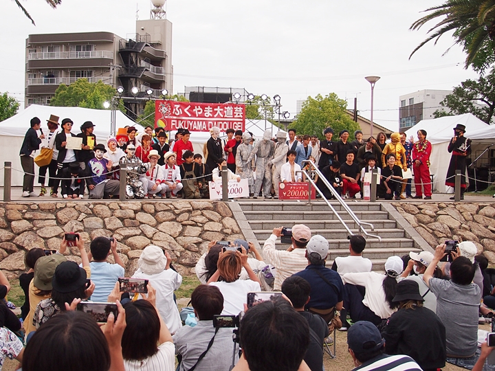 グランプリ大会の表彰が終わりますと、ふくやま大道芸2023≠ノ参加されましたパフォーマーの皆様がステージ上に集合し、記念撮影となりました(^.-)☆