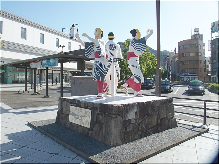 三原と言えば、そぅですネ、まずはやっさ踊り≠ェ頭に浮かびます。やっさ踊りの像には、こんな説明文が…