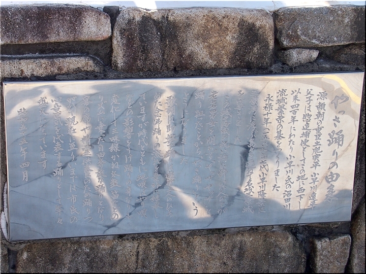 この城落成の祝いに酒に酔った人びとが、老若男女を問わず「ヤッサ ヤッサ」と踊り狂ったことから「やっさ踊り」というようになりました。