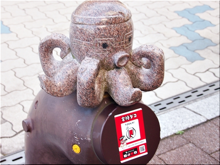 また、駅前の商店街にも、石で造られた様々な表情のタコのオブジェが点在しています。触るとご利益があるかもしれません。タコパワーで受験をパスしましょう。(ライター:haruhana)