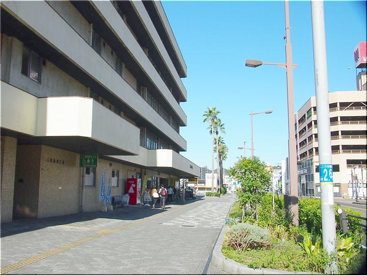 国道2号線手前から地下道を抜け、西方に出ますと、スグに三原港です。三原港湾ビルの入口付近に、今回のさぎしま一周ウォーク≠フ受付が(^-^)