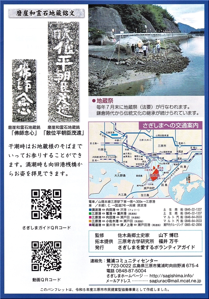 受付で、参加費2,000円を支払い「さぎしまウォーキングガイド」「さぎしまガイドマップ」「磨崖和霊石地蔵」…等のパンフレットを頂き、「本日の参加者数は?」とお尋ねしますと、「22名です…」との事でありました。