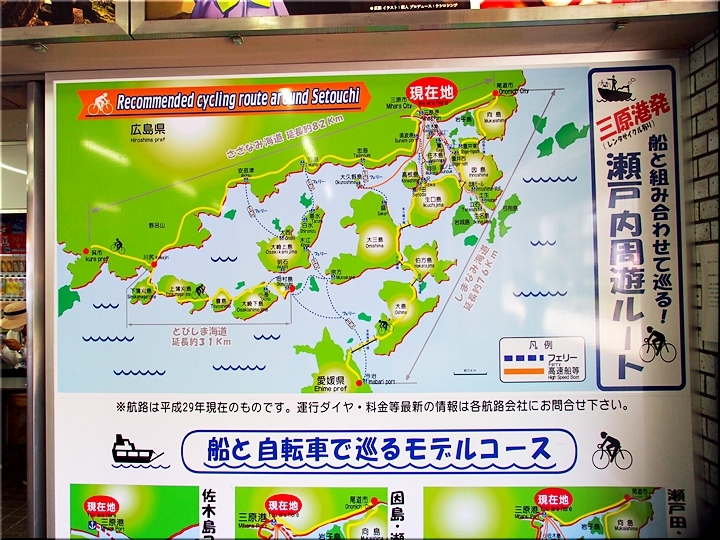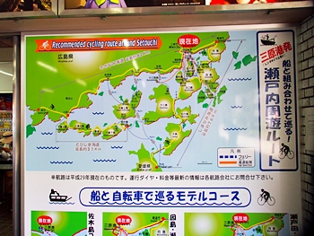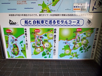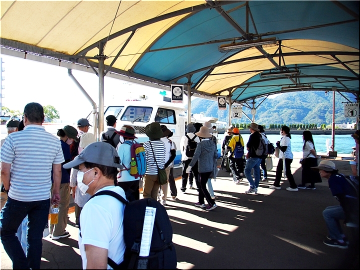 高速船乗船まで、未だ暫く時間がありますので、港湾ビル待合室に掲示の瀬戸内周遊ルート≠眺めたり、頂いたパンフレットに眼を通しておりますと、A.M.9:00頃でしたか…高速船が到着です。