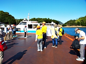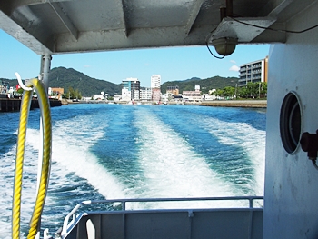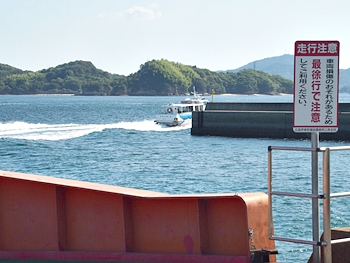 9時過ぎに高速船は鷺港に向け出航です。わずか15分程度の乗船ですから、GONsanは客室には入らずデッキから穏やかな瀬戸の海を眺望となりました。
