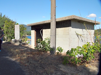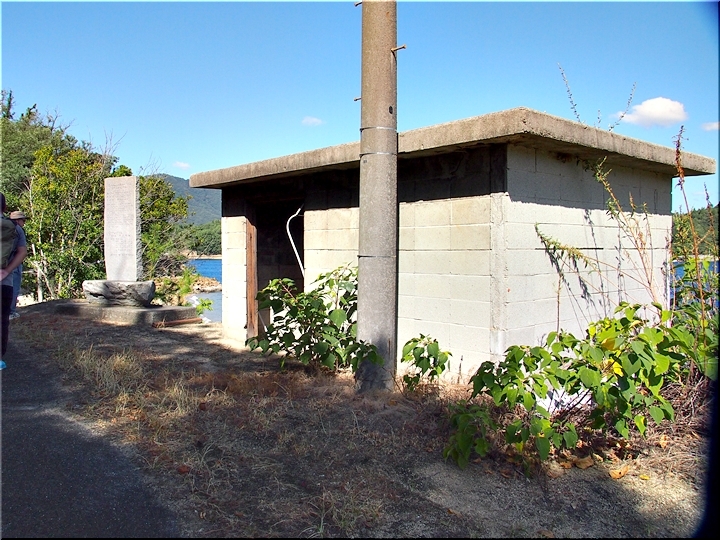 この記念碑の右隣りには、コンクリート造りの小屋が…案内して頂いたボランティアガイドさんのお話しでは、当時の小学生の生徒さん達の、登下校時の避難所・待機所と言っておられましたような(^-^)