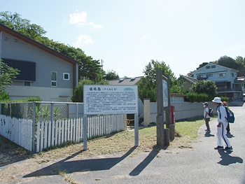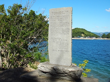 まみいの家≠ゥら少し先に進みますと、海岸沿いに石碑が…