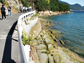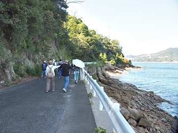 大野浦海水浴場からは、また、海岸沿いを左廻りに一周ウォークが続行です。