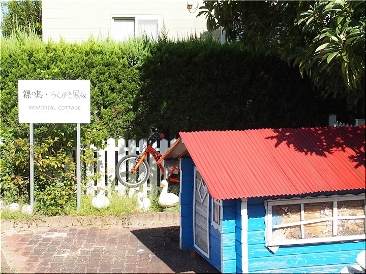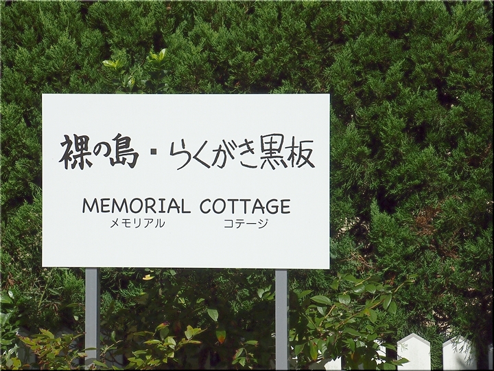 「佐木島灯台⇒」の案内表示を横目に直進しますと、「裸の島・らくがき黒板 MEMORIAL COTTAGE」の表示が…これは何なんでしょう?