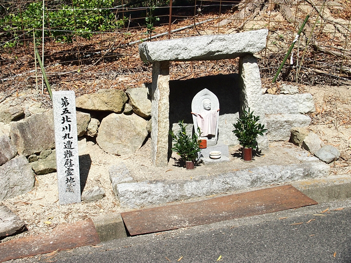 第五北川丸(総トン数39トン)は、昭和32年(1957)4月17日瀬戸田港から尾道港へ帰途の佐木島西海岸沖で座礁、転覆し113人の方が亡くなった第五北川丸沈没事故。この犠牲者を追悼する地蔵さん。