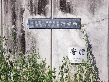 そして、少し先の右手には、何やら建物が…入口壁面には「三菱重工労働組合・三原製作所支部 寄贈 平成26年3月31日 三菱重工労働組合 三原支部」の銘板が(^.-)☆