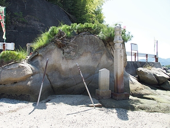 磨崖和霊石地蔵には、地蔵の肩あたりまで潮に濡れる海中の花崗岩の巨岩は、幅4.7m、高さ2.7m、厚さ4.0mで、西の面に地蔵菩薩が刻まれている。
