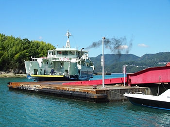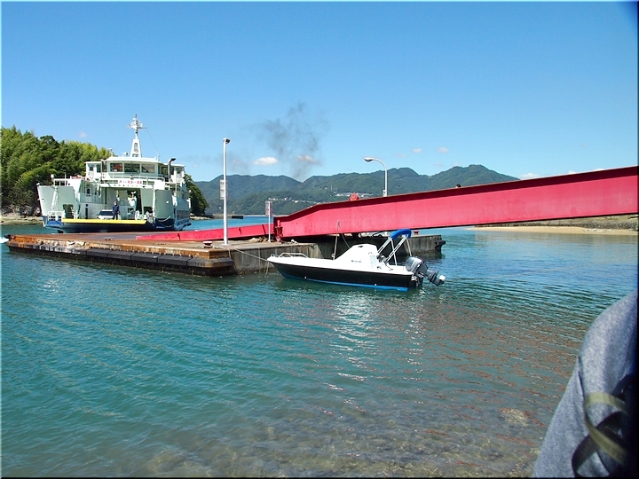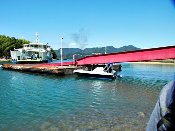ふん、ふん、佐木島に車で来ます時には、須波港〜向田港間のフェリーを利用しますようですネ。