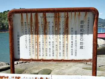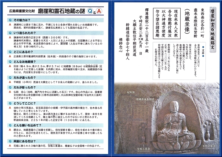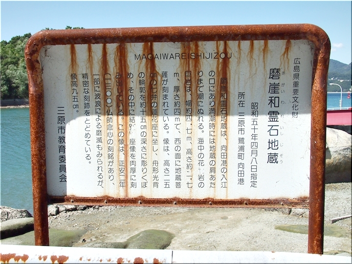 この像は、全体的に波浪による摩滅がみられるが、正安二年(1300)仏師念心の刻銘があり、当時の瀬戸内海地域の歴史を示す貴重な文化財である。
