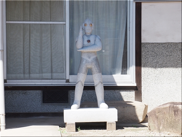 峠を越えて亀山八幡神社方向へ下っておりますと、民家の軒先に昔懐かしいウルトラマン≠フ石造が(^-^)