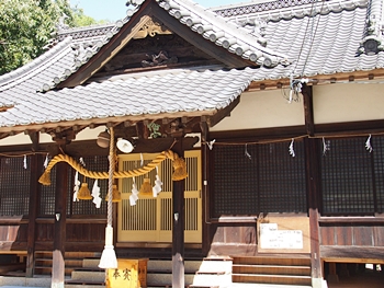 創建1129年の亀山八幡神社。約半世紀前までは、ここから塩田が見えたと聞く。
