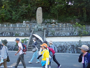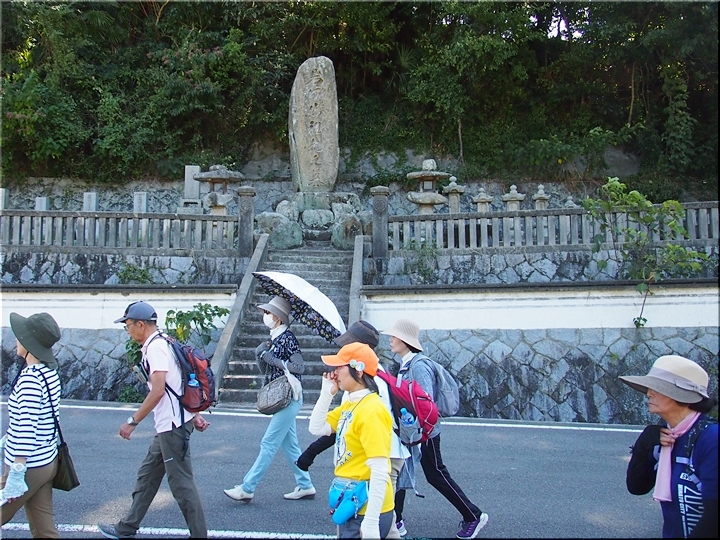 それでは、また、ウォーキングがスタートです。亀山八幡神社からは、峠を越え佐木島東部の海側へと向かいます。峠の上り口辺りには墓地が存在で、立派なお墓が…