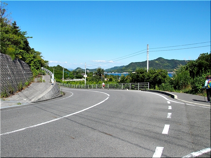 峠を上りきりますと、前方が開けて青々とした瀬戸内が(^_^)v