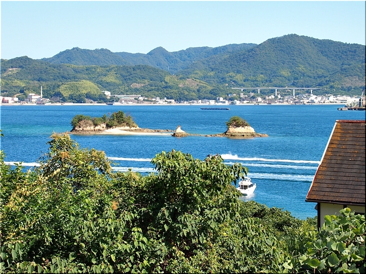穏やかで青々とした美しい瀬戸内に眼を向けていますと、周辺にはこじんまりとした建物が散在です。これらの建物は別荘なんですねぇ〜イィ景観です(^.-)☆