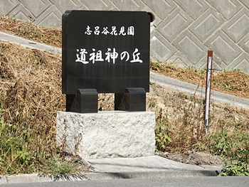 右手の美しい海を横目に進んでいますと、志呂谷花見園「道祖神の丘」≠フ石碑が…