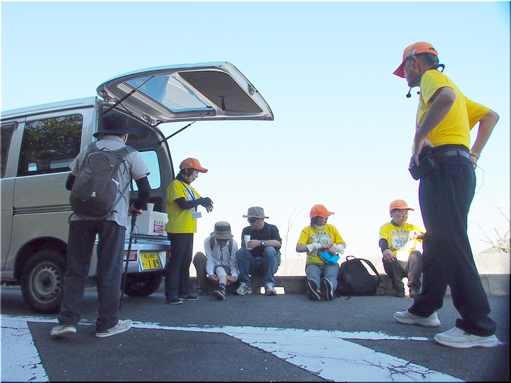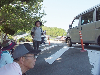 ポニーとお別れし、さぎしま青年の家°゚くまでヤッて来ますと、昼食後にウォーキングスタートから1時間半経過ですので、道路脇の木陰で休息となりました。