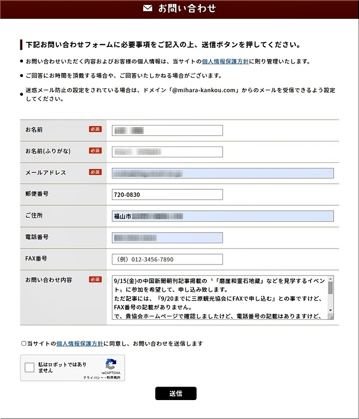 自分で調べろ…と言う事なんでしょうから、三原市観光協会ホームページを覗いてみますと、電話番号の記載はありますけど、これまたFAX番号の記入はありません。