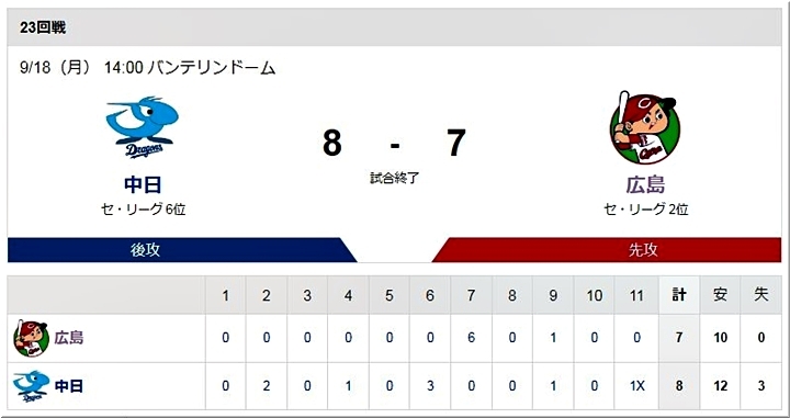 ◆広島×中日 23回戦