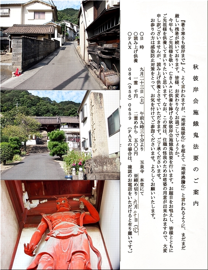 で、その数日後に届きました『秋彼岸会施餓鬼法要』のご案内には、「この度は、住職の怪我のためお塔婆用意が出来かねますので、大変申し訳ございませんが、読み上げ供養とさせていただきます…」と、記載されておりました(^-^)