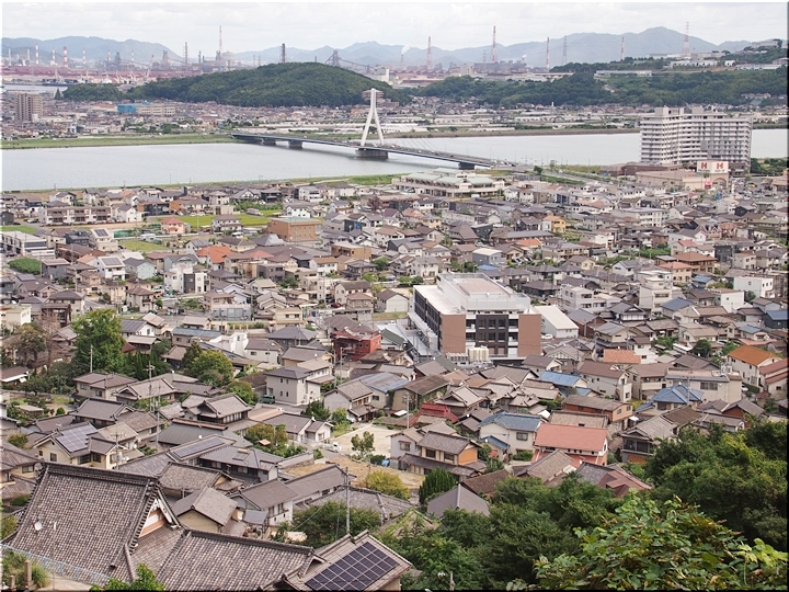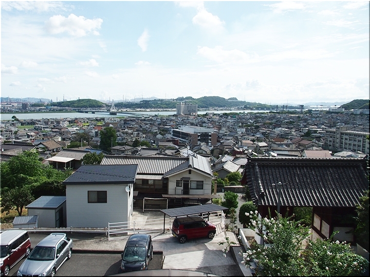草取り・清掃を終えますと、暫し読経。そして、いつものように眼下の我が町を眺望です。工事もほぼ終わり、竣工・開院も近付いて来ました福山南病院