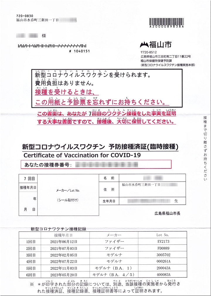 先日・9/21(金)でしたか…第7回目のコロナワクチン接種のご案内が届いておりました。